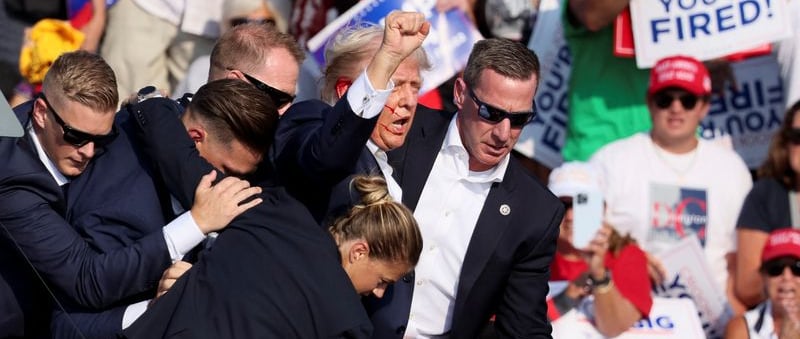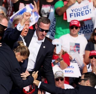Former President and Republican nominee Donald Trump survived an assassination attempt on Saturday evening at a campaign rally in Butler, Pennsylvania. An assailant fired multiple shots at Trump from an elevated position just outside the security perimeter, striking him in the right ear. Trump was immediately rushed off stage, and the shooter was killed. Emerging from the incident, Trump shouted, "Fight! Fight! Fight!"